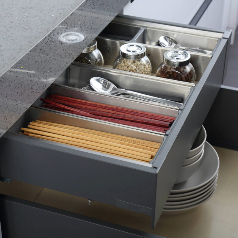 ‧ 全新薄抽系列滑軌,雙薄型側牆質感優異,適用於各種櫥櫃、衣櫃或家具